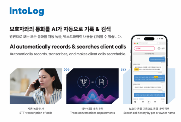 ‘인투로그’ 이용 시 보호자의 전화가 연결되는 순간 자동 녹음이 시작되고, 통화 종료 즉시 내용이 텍스트로 변환된다. 변환된 데이터는 별도 작업 없이 고객 정보와 자동 매칭되며, 재방문 및 신규 보호자 여부도 시스템에서 자동으로 구분한다. 이를 통해 상담 기록의 정확성과 일관성이 크게 강화된다.