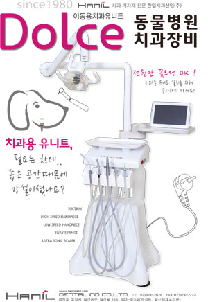 즉, 동물병원에서 수의치과 치료를 하기 위한 모든 시스템을 한 곳에 모아놓은 장비로써 설치를 위한 공사 없이 전원 공급만으로 사용이 가능해 치과 진료시설이 갖춰지지 않은 동물병원이나 추가로 확충하고자 하는 동물병원에 적합한 장비다.