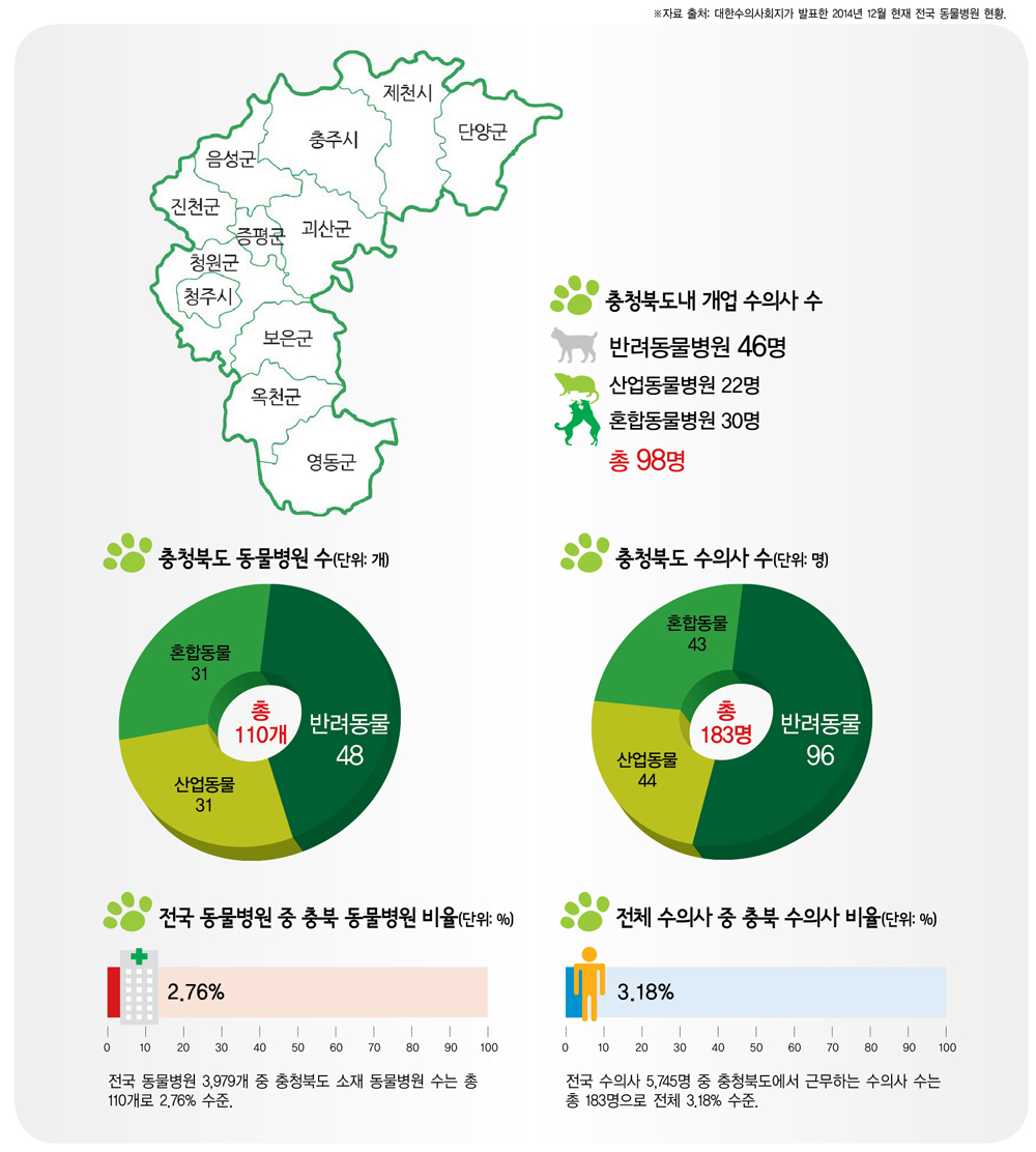 충청북도 동물병원 110개·수의사 183명 전국 동물병원 중 2.8% … 전체 수의사 중 3.2% 수준 저작권자 © 데일리개원 무단전재 및 재배포 금지 개원 다른기사 보기 페이스북 트위터 URL복사 네이버라인 기사공유하기
