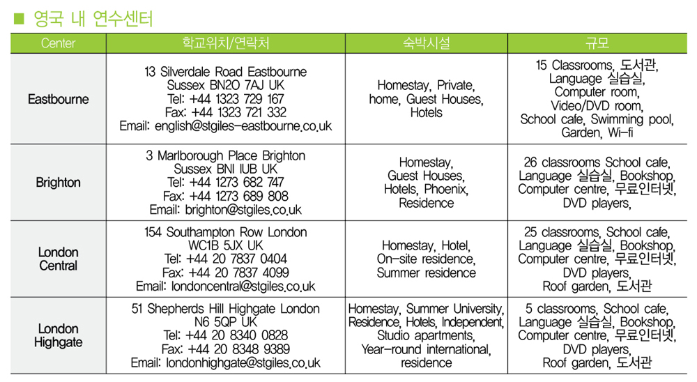 이번 호에서는 영국에 본부를 두고 있고, 그 외 미국, 캐나다, 브라질에 센터를 가지고 있는 St. Giles college 에 대해 안내하고자 한다.