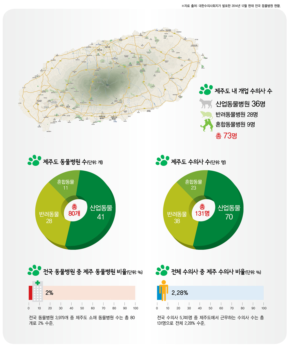 제주도 동물병원 80개·수의사 131명 전국 동물병원 중 2% 수준 … 전체 수의사 중 2.3% 분포 저작권자 © 데일리개원 무단전재 및 재배포 금지 개원 다른기사 보기 페이스북 트위터 URL복사 네이버라인 기사공유하기