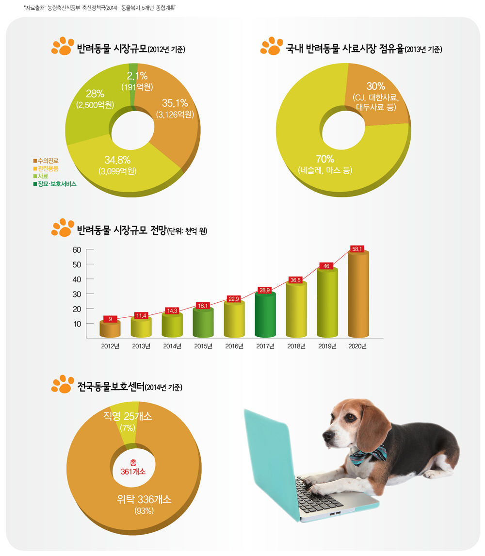 반려동물시장 전체 중 관련용품 34.8%·사료 28% 순