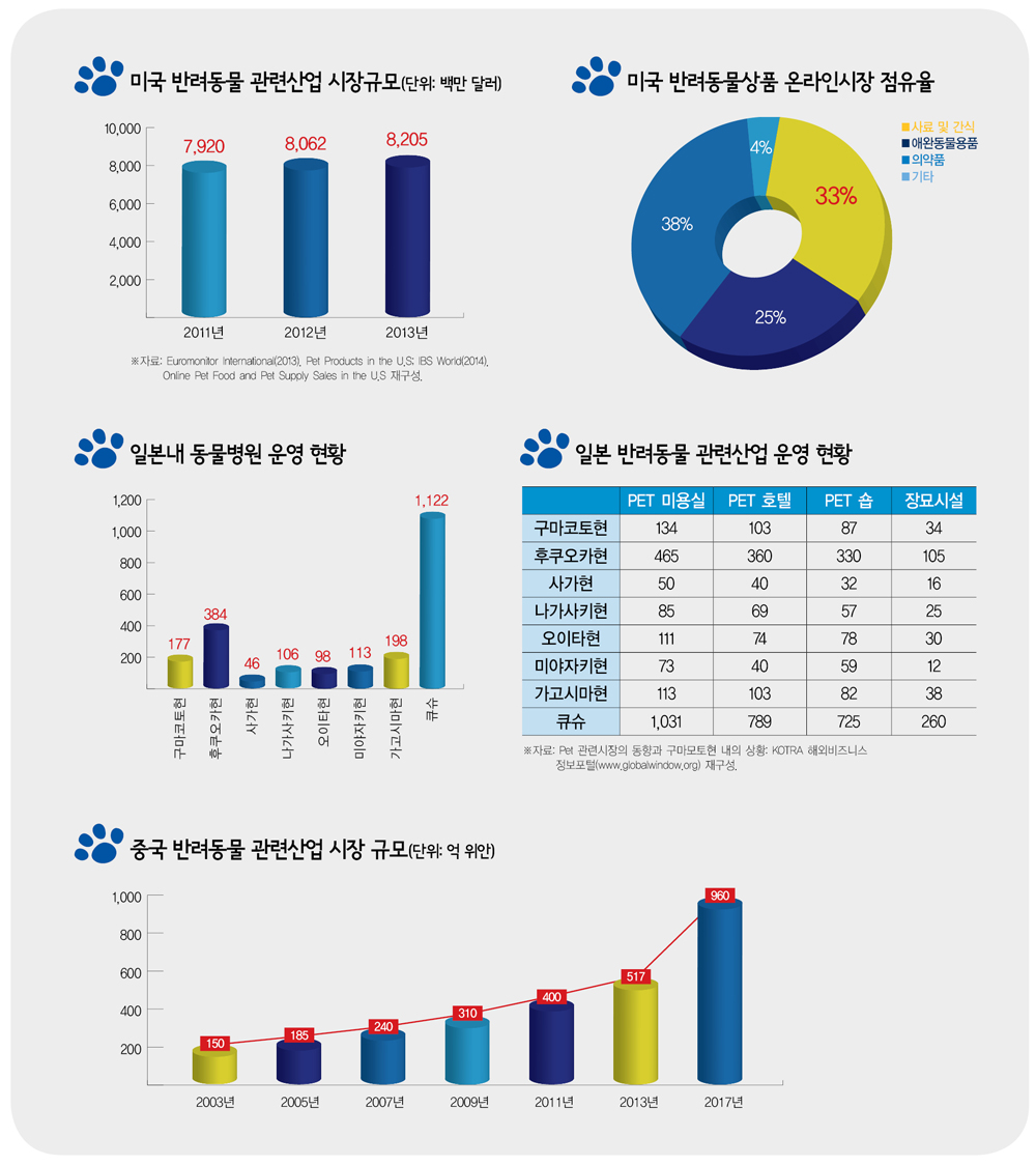 중국시장 2017년 960억 위안 전망 미국 반려동물 수 2억 2천마리 … 시장규모 82억540만 달러 저작권자 © 데일리개원 무단전재 및 재배포 금지 개원 다른기사 보기 페이스북 트위터 URL복사 네이버라인 기사공유하기