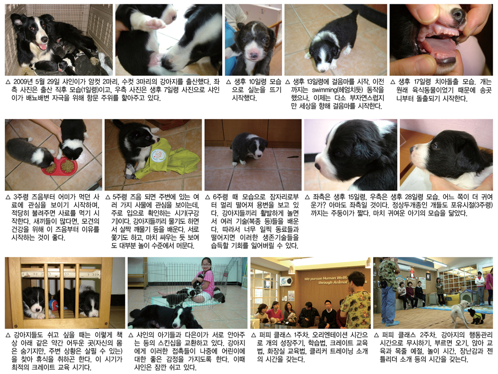 이 시기에는 특히 보호자의 일관성과 예측가능성이 매우 중요하다. 이 특별한 시기 중 7개월차를 동물행동학자들은 ‘7개월차 미친 행동기’라 부른다. 이는 우리 아이들의 14세에 해당하는 시기로, 흔히 중 2병이라 부르는 질풍노도의 시기로, 바로 개들의 사춘기다. 이 시절에 개들도 스스로 집 밖을 자주 나간다. 제일 많이 잃어버리거나, 다른 곳으로 보내지거나 버려지는 시기이다.