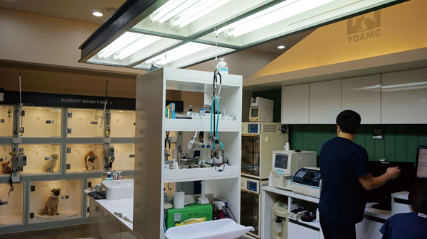 강서YD동물의료센터는 100평 규모에 원장 2명, 부원장 1명, 수의사 3명, 스탭 16명이 근무하고 있다.