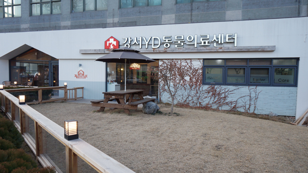 강서구청 입구 교차로에 위치한 강서YD동물의료센터(공동원장 명정웅`허동영)는 유난히 넓은 정문 앞 인도와 블록까지 이어진 탁 트인 공간에 동물병원 전경이 한눈에 들어오는 자리에 있다.