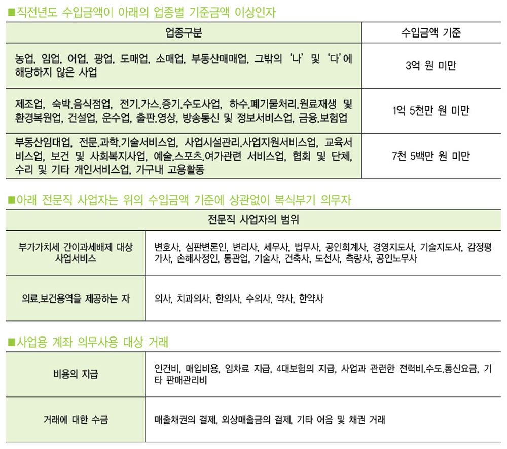 사업용 계좌의 신고는 ‘복식부기 의무자’에 한한다. 복식부기 의무자는 누구일까?