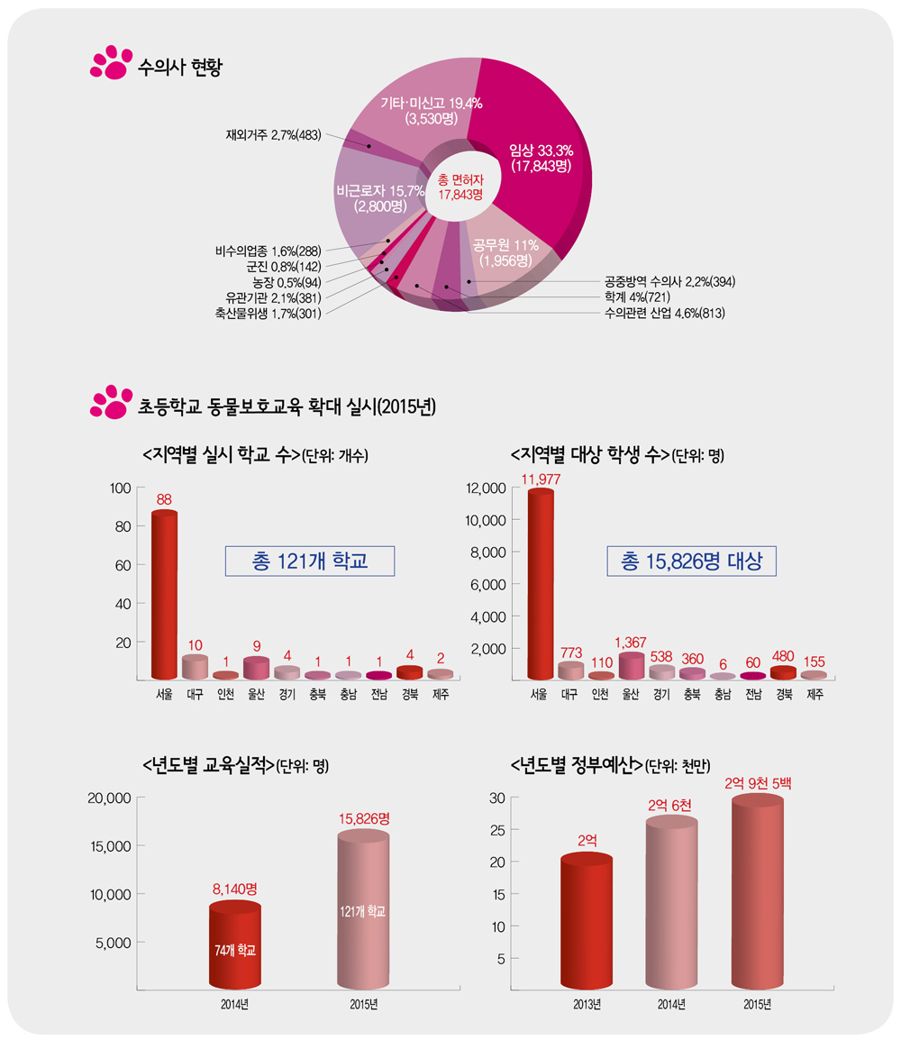 총 면허자 17,843명 중 ‘임상’ 33.3% 초등학교 동물보호교육 확대 실시도 … 전년대비 대상 학생 50% 이상 확대 저작권자 © 데일리개원 무단전재 및 재배포 금지 개원 다른기사 보기 페이스북 트위터 URL복사 네이버라인 기사공유하기