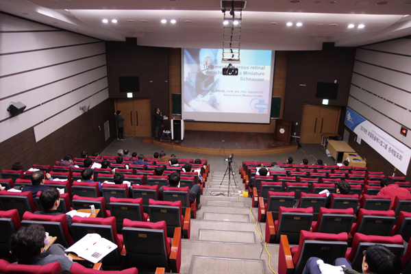 ‘복부질환’ 강의에서는 이기종 원장, 이승훈 과장, 김영환 원장, 강명석 원장, 옹성민 부원장, 김세훈 과장이 연자로 나서 위장관종양, 복강 종양성 질환, 장내이물 진단 등 모두 6개의 연제를 발표했으며, ‘안과’에서는 정만복 과장이 미니어처슈나우저에서 장액성 망막박리 치료증례를 발표했다.