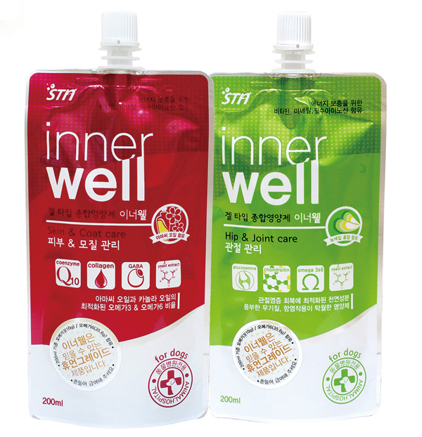 겔 타입의 휴먼그레이드 종합영양제인 ‘이너웰’은 동물병원 전용제품으로서 ‘피부와 모질관리’와 ‘관절관리’ 2가지 종류다.