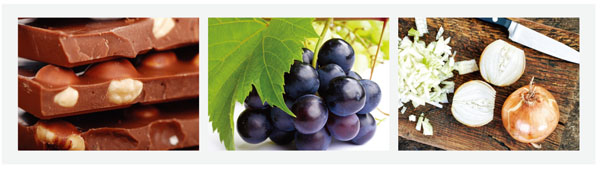 개에게 위험한 세 가지는 초콜릿, 껌, 포도나 건포도이다. 이러한 항목들은 목록을 만들어서 반려동물로부터 멀리 두어야 한다.