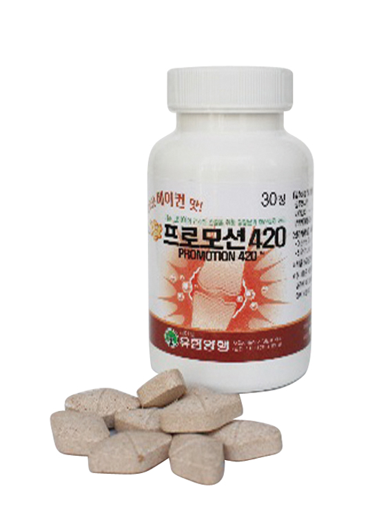 ㈜유한양행이 출시한 ‘프로모션 420’은 관절을 보호하기 위한 강력한 항산화 효과를 갖는 Bioflavan과 건강한 관절의 유지를 위해 필요한 영양소인 Glucosamine, Hydrolyzed Collagen을 제공한다.