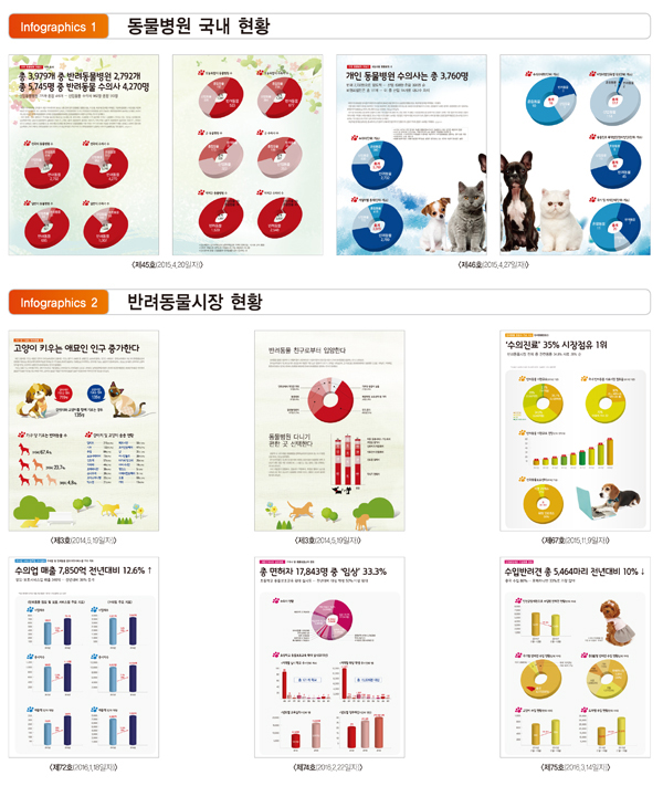 본지 ‘인포그래픽’ 코너를 꼭 챙겨본다는 독자들이 많을 정도로 ‘인포그래픽’은 개원의 히트 아이템이다. 아직 관련 통계자료나 데이터들이 체계적으로 정리돼 있지 않은 수의계에 본지 ‘인포그래픽’ 코너는 독자들의 시선을 단번에 사로잡으며 최고 인기코너로 자리 잡았다. ‘인포그래픽’ 은 앞으로도 체계적인 통계 분석으로 수의계의 정보 데이터화에 기여할 계획이다. <편집자주>