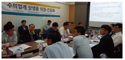 최근 늘어나는 전시 부스 참여와 후원 등으로 업체들의 부담이 가중되면서 세미나 주최를 단일화 하자는 의견들이 제기되는 가운데, 지난 4월 26일 수의사 단체장들과 업체 실무자들이 한 자리에 모이는 간담회 자리가 처음으로 마련됐다.