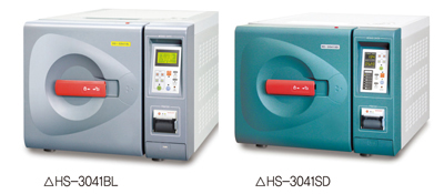 ‘HS-3041SD’와 ‘HS-3041BL’는 S-Class, Digital LED Display Monitor type으로 사각형 체임버(Rectangular Chamber)를 장착해 체임버 내 가용공간을 최대한 넓게 사용할 수 있으며, 일반 의료용 기구 및 의료용품을 효과적으로 멸균하는데 적합한 S-Class 소형멸균기이다.