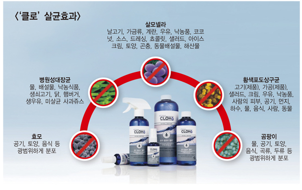 ‘클로’는 미산성차아염소산수(HOCI)로 각종 세균과 바이러스를 광범위하게 살균, 사멸시키는 순수 100% 천연 살균수다.
