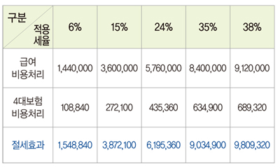 어떤 절세 효과가 있을까? 원장님의 부인이 부담할 개인소득세 및 회사부담 4대 보험금까지 더해져도 실제로 절세효과가 있을까?