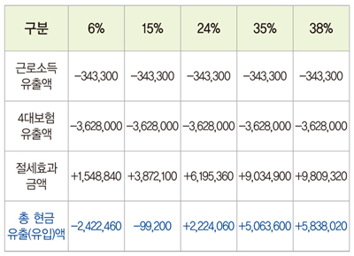 배우자를 직원으로 신고하는 것이 절세적인 측면에서 유리하려면 현금유출액이 절세효과보다 작아야 한다.