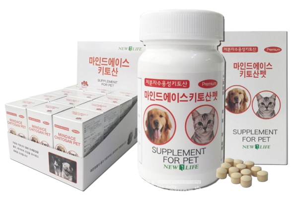 100% 수용성 키토산 제제의 ‘마인드에이스키토산펫’은 반려동물 유해물질을 강력하게 흡착, 제거하고, 종양세포의 증식 및 전이를 억제하는가 하면, 만성신부전이나 관절 통증, 피부질환 등에 뛰어난 효과를 보이며, 특히 면역기능을 활성화 시킨다.