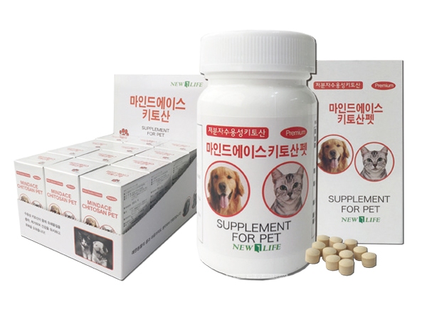 키토산 고함량에 안전성을 갖춘 ‘New 마인드에이스키토산펫’은 기존 용량 70정에서 80정으로, 150정에서 180정으로 용량은 대폭 늘어난 반면 가격은 동일하다. 특히 국내 공급되는 ‘New 마인드에이스키토산펫’은 키토산 함량이 다른 국가 제품보다 10% 이상 높다.