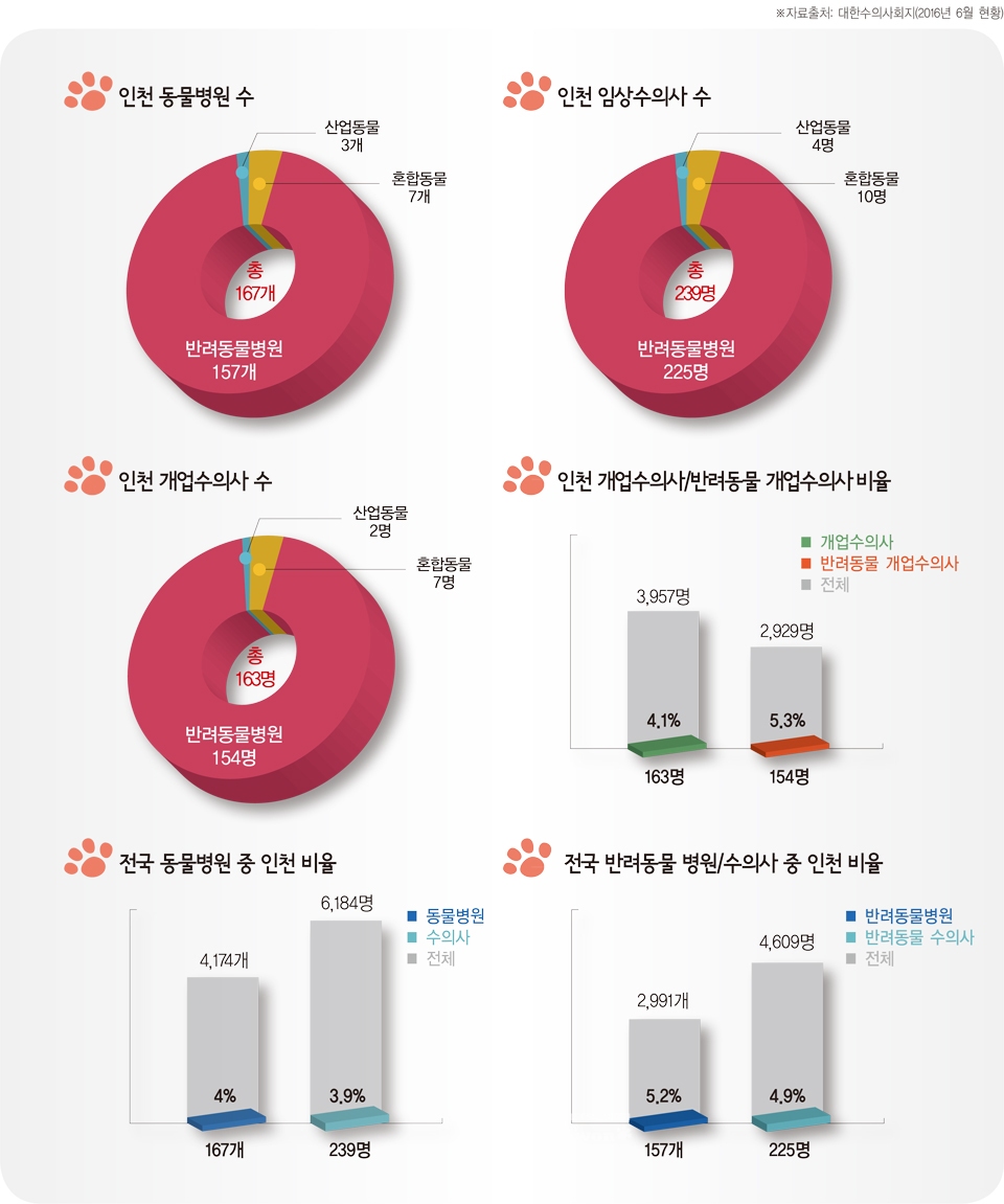 인천광역시인천 동물병원 167개‧수의사 239명 전국 병원 중 인천에 4% … 전체 수의사 중 3.9% 분포 저작권자 © 데일리개원 무단전재 및 재배포 금지 개원 다른기사 보기 페이스북 트위터 URL복사 네이버라인 기사공유하기