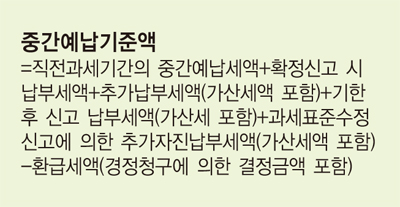 중간예납세액=중간예납기준액×1/2-토지 등 매매 차익 예정신고납부금액