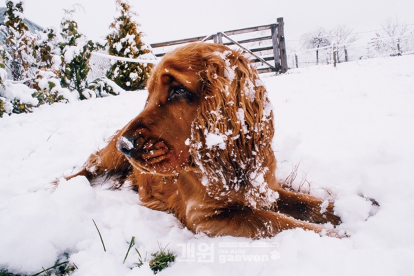 개는 눈 쌓인 길을 산책할 때 털에 눈이 닿으면 눈 속에 숨는 못된 버릇이 있고, 그 안에 들어가면 핥는다. 산책한 후에는 항상 개를 말끔히 씻어주고, 털에 붙은 눈덩이를 털어내야 한다.