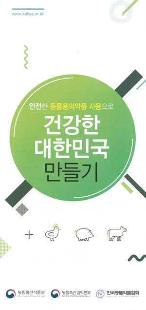 (사)한국동물약품협회(회장 곽형근)가 동물용의약품의 사용과 휴약기간 준수 등에 대한 정보 제공을 통해 동물용의약품의 오‧남용을 예방하자는 차원에서 ‘안전한 동물용의약품 사용으로 건강한 대한민국 만들기’ 리플릿을 제작 배포했다.