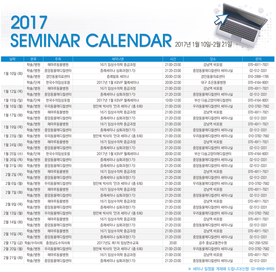 2017세미나캘린더(1월 10일~2월 21일)