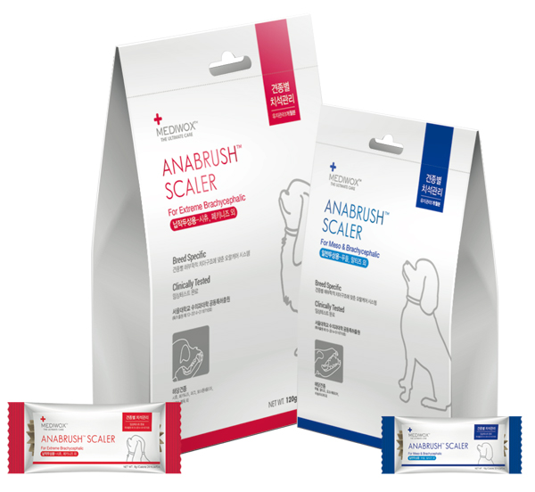 ‘메디웍스 아나브러쉬’는 서울대학교 수의과대학과 산학협동 연구제품으로 특허출원한 국내외 최초의 견종별 구강케어 제품으로, 견종별 치아와 구강의 22가지 인덱스 실측을 바탕으로 설계, 납작두상용과 일반두상용을 출시해 주목받고 있다.