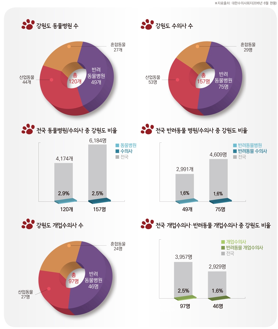 강원도강원 동물병원 120개‧수의사 157명 전국 병원 중 강원도에 2.9% … 전체 수의사 중 2.5% 분포 저작권자 © 데일리개원 무단전재 및 재배포 금지 개원 다른기사 보기 페이스북 트위터 URL복사 네이버라인 기사공유하기