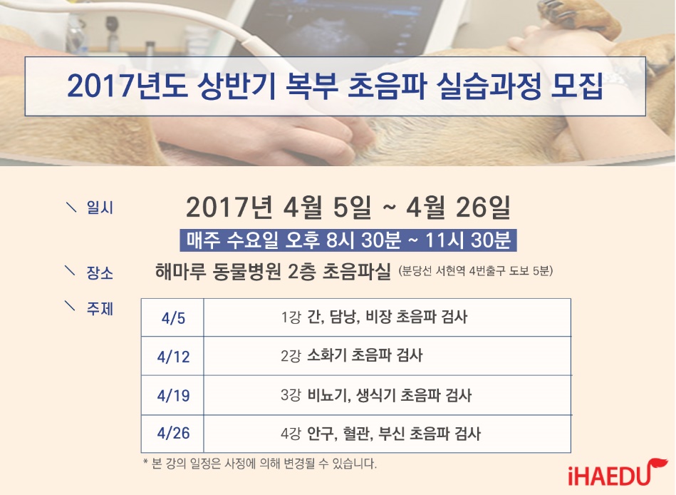 아이해듀, 17기 임상수의학 기본과정```3월 13일(월) 신청마감