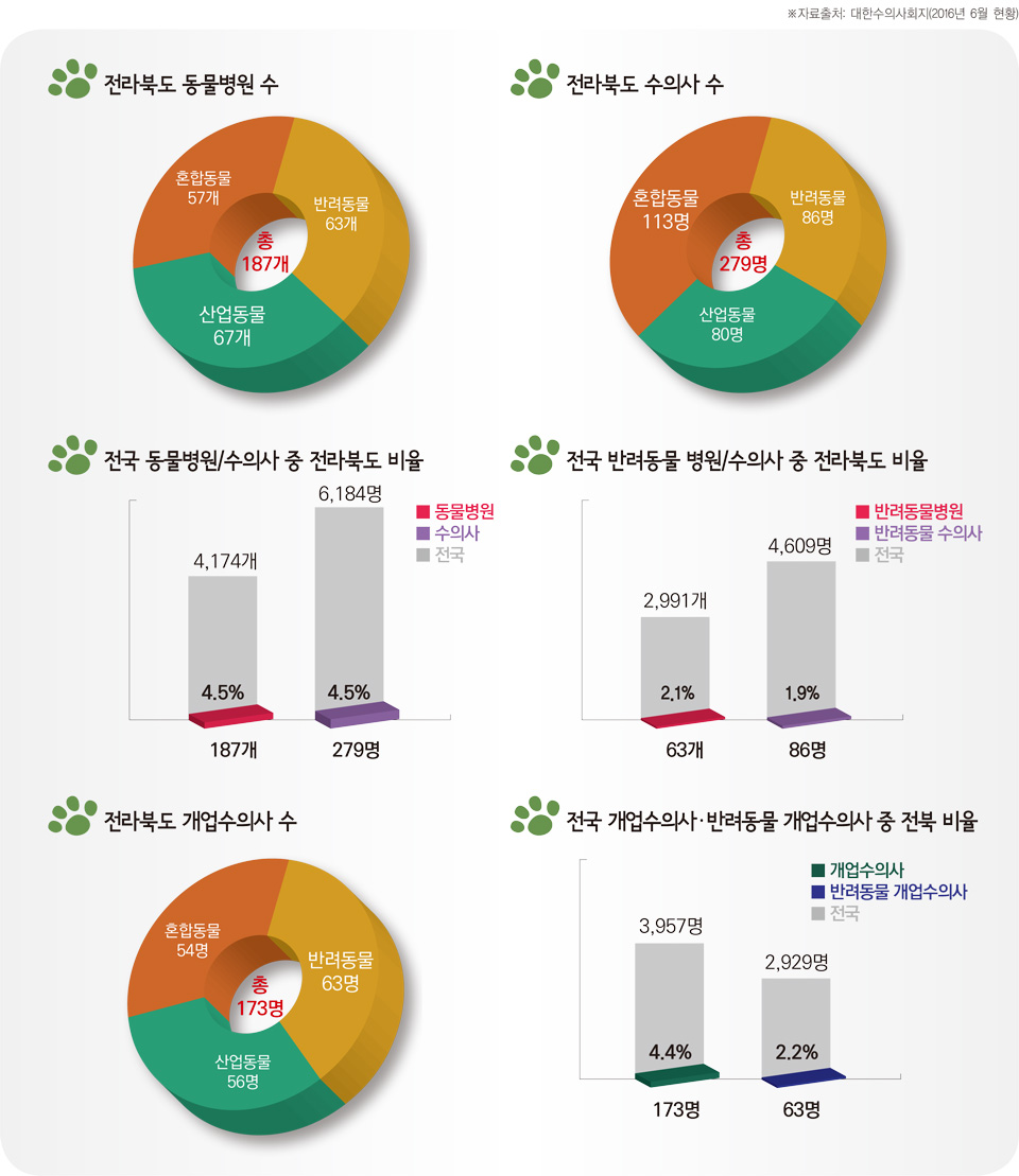 전북 동물병원 187개‧수의사 279명 전국 병원 중 전북에 4.5% … 전체 수의사 중 4.5% 분포 저작권자 © 데일리개원 무단전재 및 재배포 금지 개원 다른기사 보기 페이스북 트위터 URL복사 네이버라인 기사공유하기