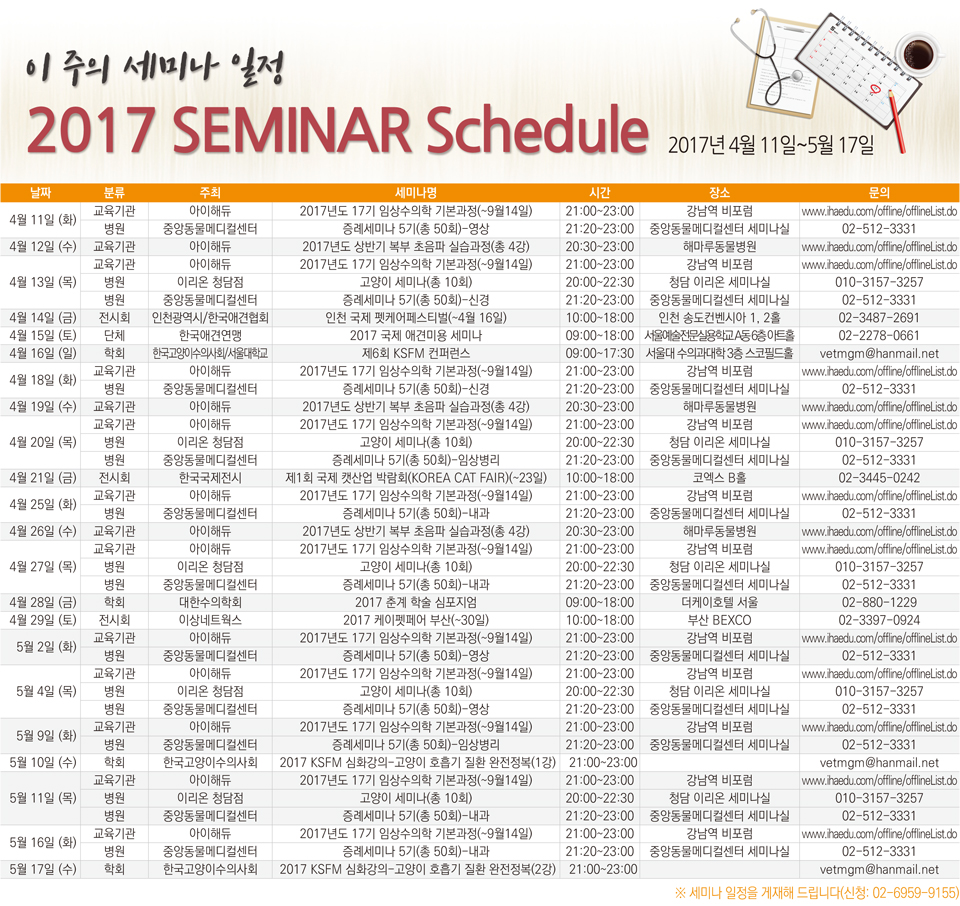 2017세미나캘린더(2017년 3월 30일~5월 9일)