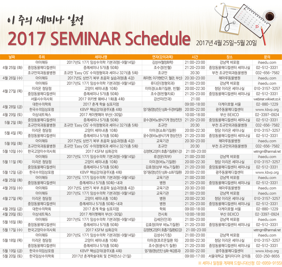 2017세미나캘린더(2017년 4월 25일~5월 20일)