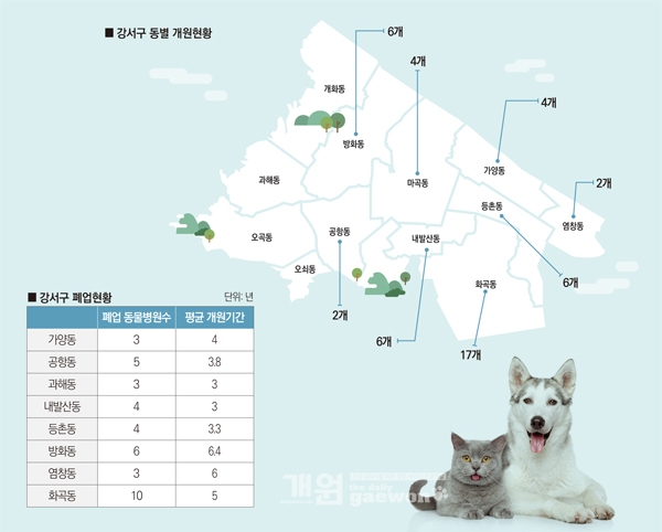 강서구에서 동물병원의 개·폐업이 가장 활발한 곳은 화곡동이다.
