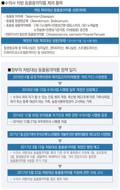 제외된 항생항균제는 농가에서 주로 사용하는 성분인 만큼 반려동물의 진료에 별다른 영향을 미치지 않는다.