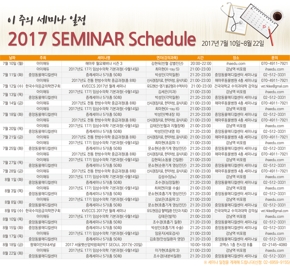 2017세미나캘린더(2017년 7월 10일~8월 22일)