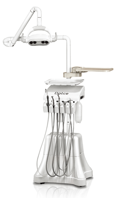 ‘돌체’는 장비의 두뇌 역할을 하는 메인 유니트에 핸드피스 탈거 시 바로 작동되는 전자식 핸드피스 스탠드가 장착돼 있어 석션, 하이&로우 스피드 핸드피스, 3Way 시린지, 울트라소닉 스케일러를 모두 갖추고 있다.
