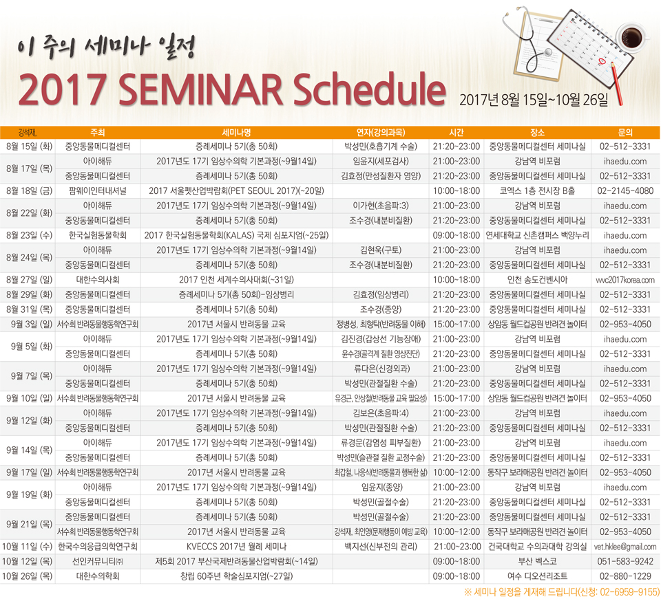 2017세미나캘린더(2017년 8월 14일~10월 26일)