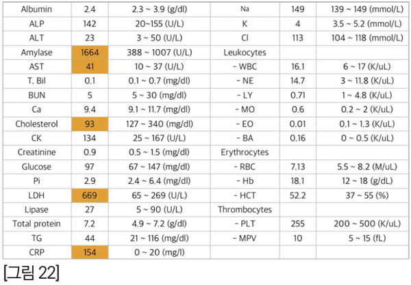 혈액검사 상에서 큰 이상은 보이지 않았습니다. [그림 22]