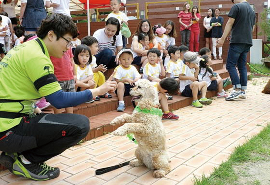 이날 수업은 유치원생이 동물을 무서워하지 않도록 하는 친화프로그램을 비롯해 각종 스포츠게임과 원내 산책 등을 통해 동물매개치료견과의 교감을 나누는 등 평소 경험하지 못했던 동물과 함께 하는 다채로운 체험수업을 통해 참가한 원생들에게는 매우 즐겁고 뜻 깊은 시간이 됐다.