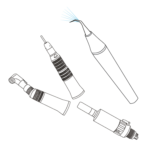 스트레이트, 콘트라앵글은 용도에 따라 교체 사용하며, 프로피앵글, 러버컵 등을 이용해 폴리싱용으로 사용하면 된다.
