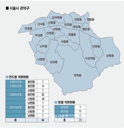 하지만 아직 넘어야할 산들이 많다. 봉천동은 아직까지 경남기업의 부도로 중단된 공사가 시행되지 않고 있으며, 일부는 조합조차 없는 상태다. D등급을 받은 강남아파트의 재건축이 22년간 표류하다 최근에야 시행사를 선정했을 정도로 관악구의 도시개발은 여전히 진행 중에 있다.