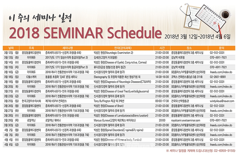 2018 세미나캘린더(3월 12일~2018년 4월 6일)