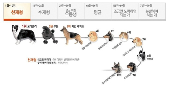 지금 여러분이 기르고 있는 개는 세상에서 몇 번째로 똑똑한 견종에 속해 있나요. 여러분은 위에 제시된 똑똑한 개 순위에 진심으로 동의하시나요.