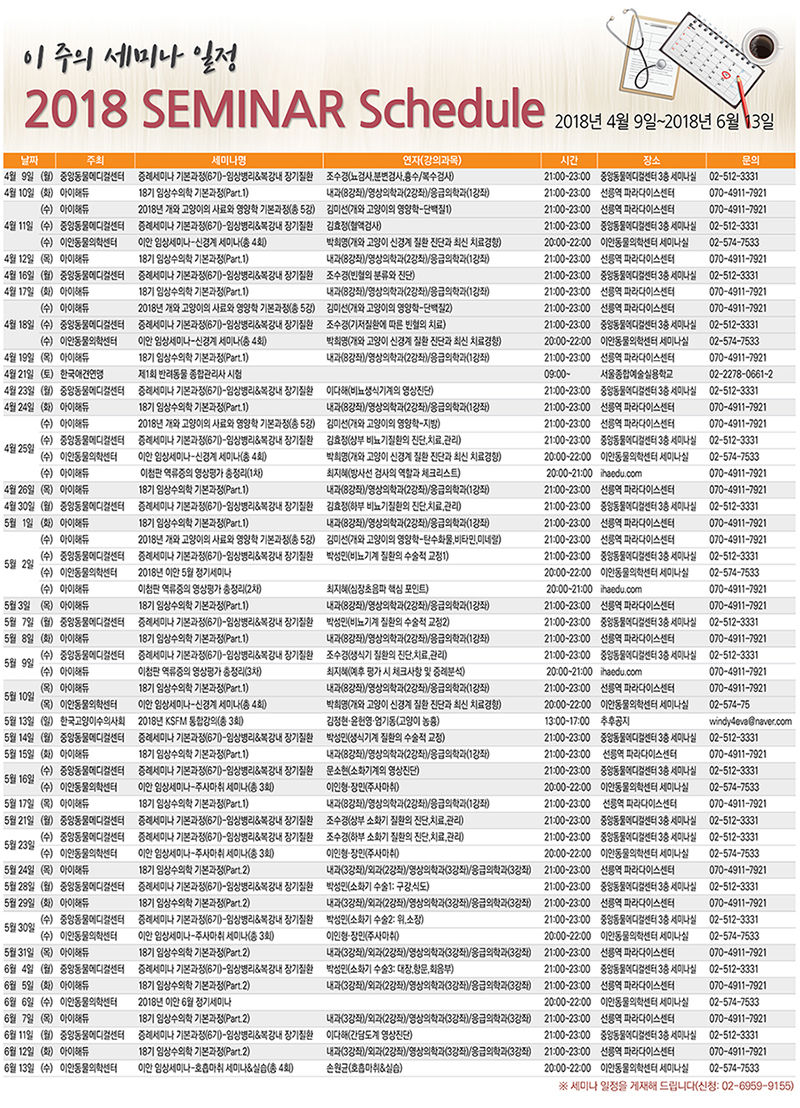 2018 세미나캘린더(2018년 4월 9일~2018년 6월 13일)