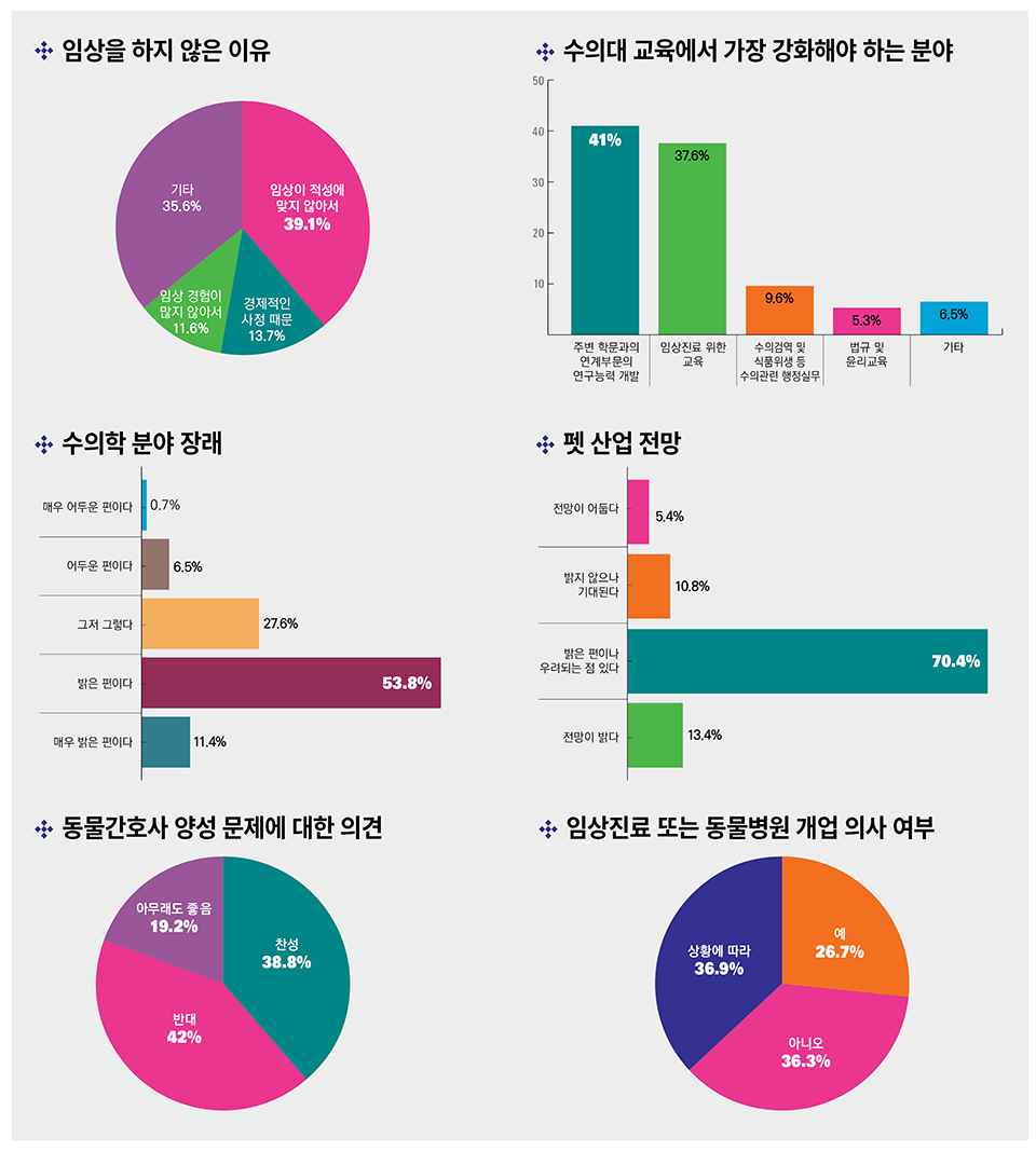 대한수의사회와 한국수의학교육인증원이 회원 18,432명을 대상으로 2016년 8월 31일부터 10월 15일까지 여론조사기관 IRC에 의뢰해 인터넷 조사한 결과, 임상수의사 875명, 비임상수의사 834명 등 총 1,709명이 응답해 9.2%의 응답률을 보였다. 다음은 비임상수의사 응답자 총 834명의 실태조사 결과다. <편집자주>
