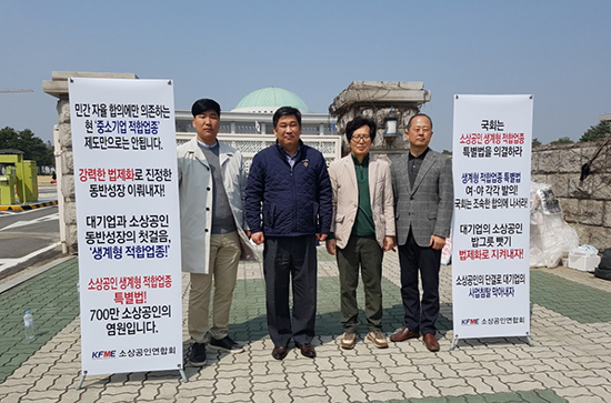 한국펫산업소매협회(회장 이기재, 이하 펫소매협)와 소상공인연합회(회장 최승재, 이하 소상연)가 지난 3월 26일 ‘소상공인 생계형 적합업종 특별법 제정 촉구 국회 앞 릴레이 1인 시위’에 나서 조속한 법제정을 재차 촉구했다.
