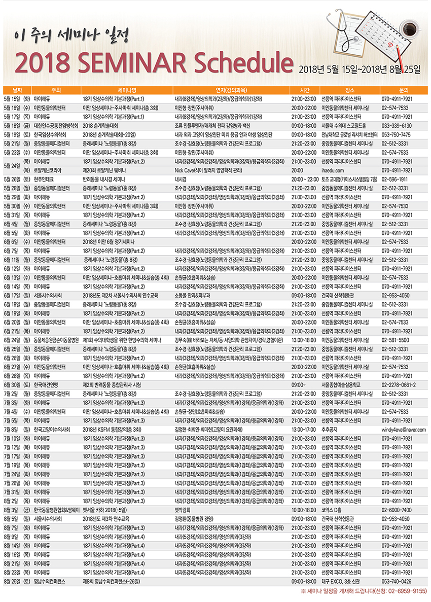 [세미나 캘린더]2018년 5월 15일~2018년 8월 25일
